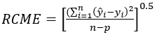 Para comparar los modelos alométricos se consideró el siguiente grupo de estadísticos de bondad de ajuste: Criterio de información de Akaike (AIC), Raíz del cuadrado medio del error (RCME), Coeficiente de variación en % (CV), Error medio relativo en % (), Sesgo promedio (