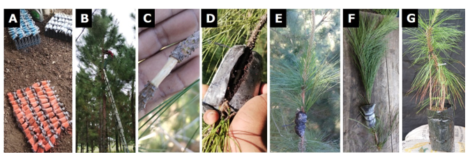 In Mexico, provenance trials are being conducted with tropical pine species to select those best adapted for establishing plantations for resin extraction and timber commercialization (Puc-Kauil et al., 2024; Torres-Ávila et al., 2020). Due to the importance of this group of fast-growing pines, cloning protocols for phenotypically outstanding trees should be explored to allow for their conservation and propagation. Although various vegetative propagation techniques exist, the most favorable one for each species and purpose should be selected (Hartmann et al., 2014).