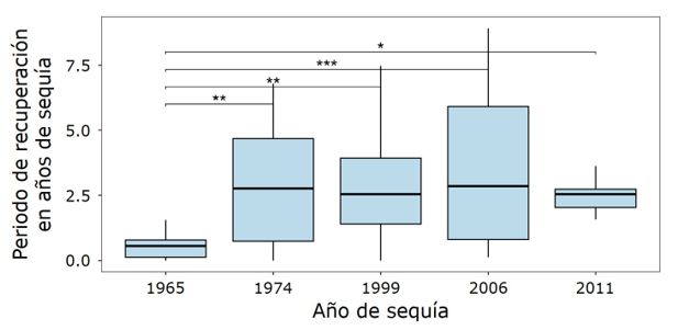 Figura 7. Comparación del periodo de recuperación en años de sequía.