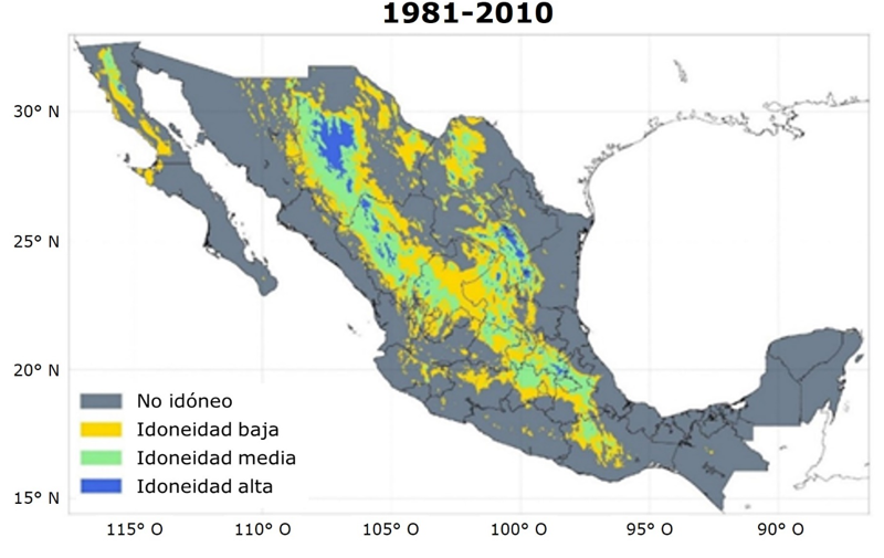 Sáenz-Romero, C., Rehfeldt, G. E., Ortega-Rodríguez, J. M., Marín-Togo, M. C., & Madrigal-Sánchez, X. (2015). Pinus leiophylla suitable habitat for 1961–1990 and future climate. Botanical Sciences, 93(4), 709-718. http://dx.doi.org/10.17129/botsci.86 DOI: https://doi.org/10.17129/botsci.86